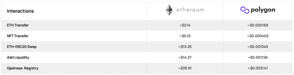 Foto: Vergleich von Ethereum und Polygon Network (durchschnittliche Transaktionsgebühr)